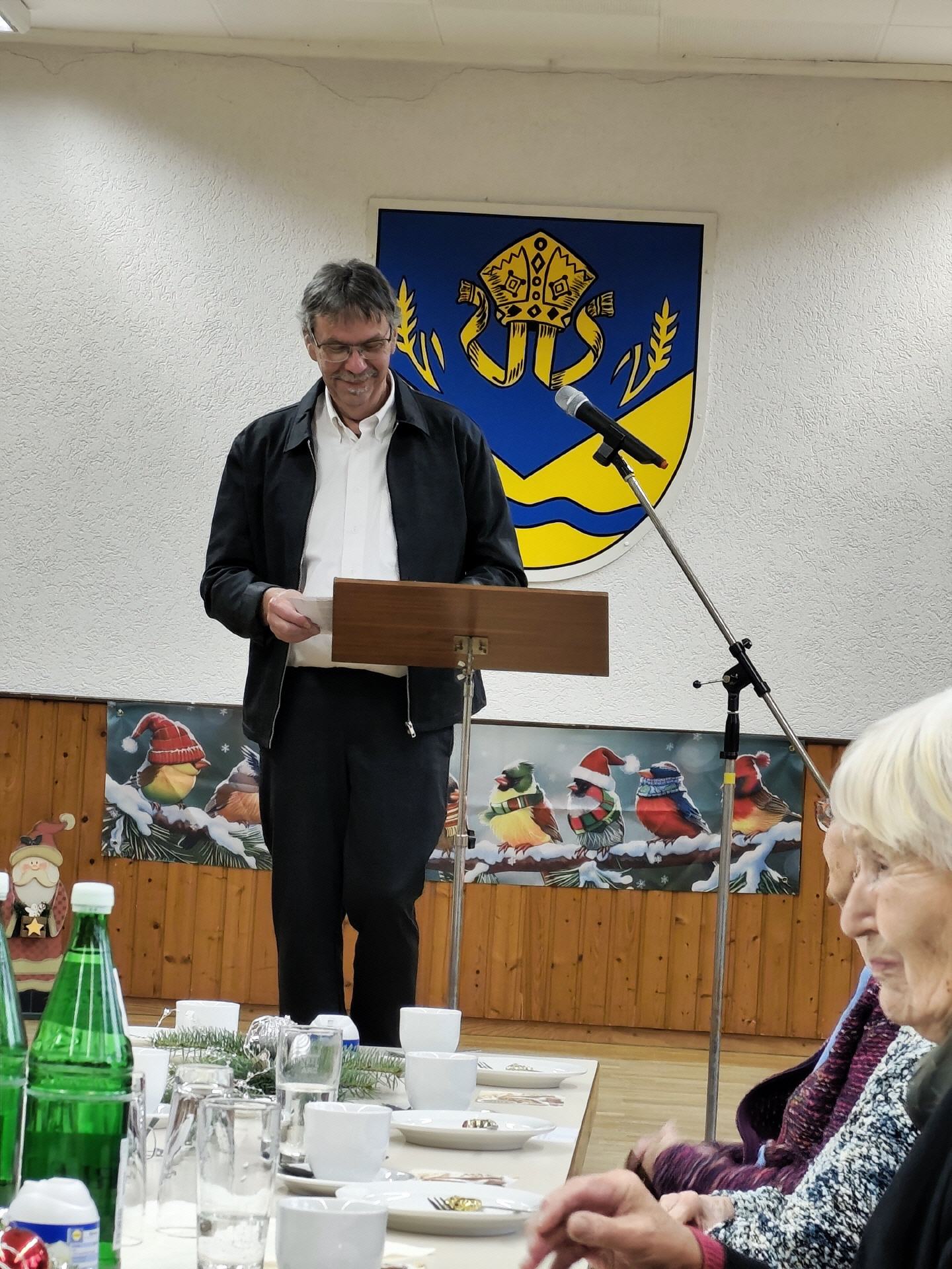 An dieser Stelle möchte ich mich auch beim Gemeinderat und den Helfern bedanken. Zu erwähnen wären: Sigfried Balsys, der bei der Technik geholfen hat, Christian Strack, der etwas später zu uns stößt und ein paar Weihnachtslieder spielt, sowie Claudia Ludwig, die die Dekoration hier und im Rathaus übernommen hat. Ich denke, dass sie alle einen Applaus verdient haben.