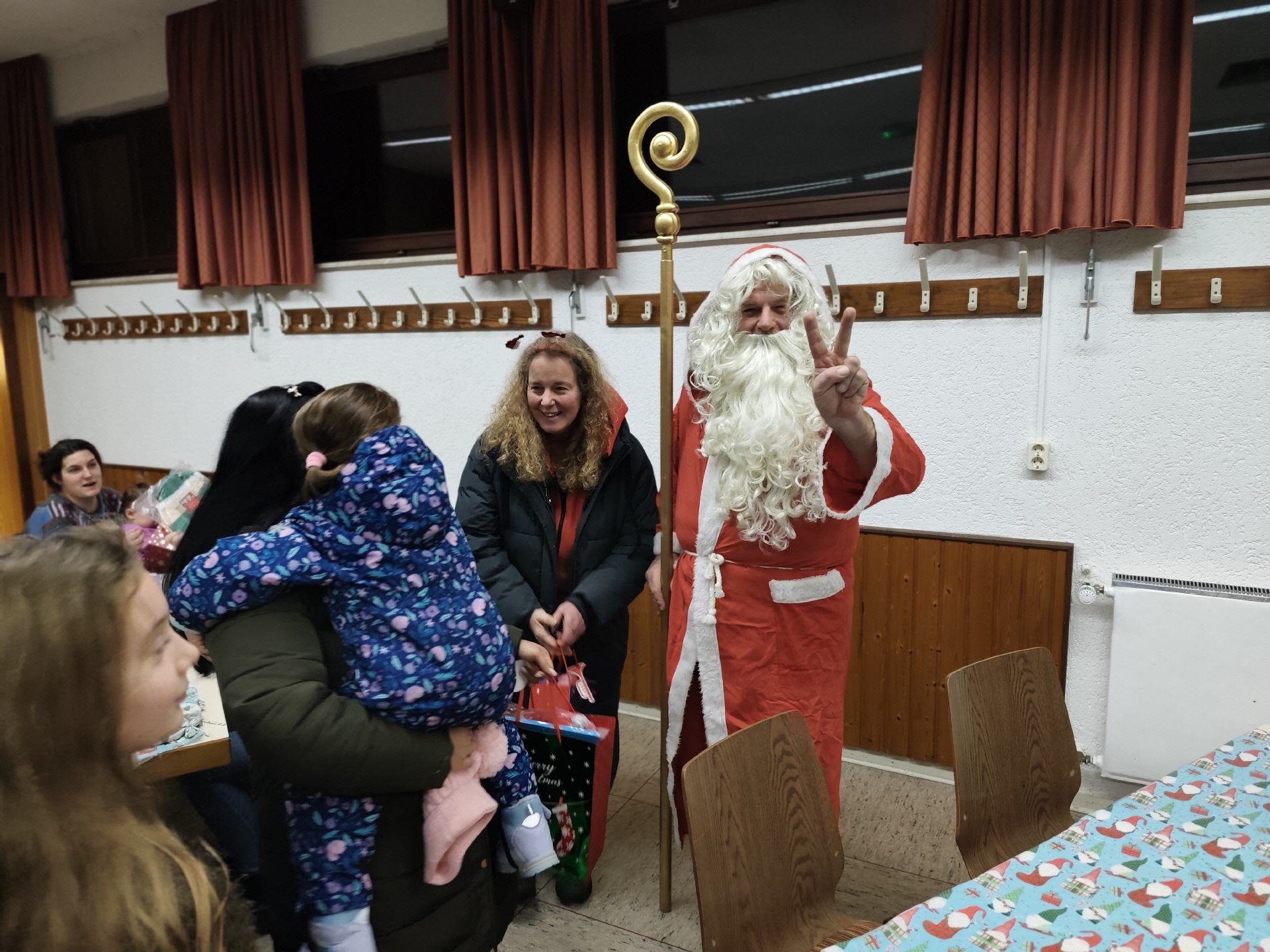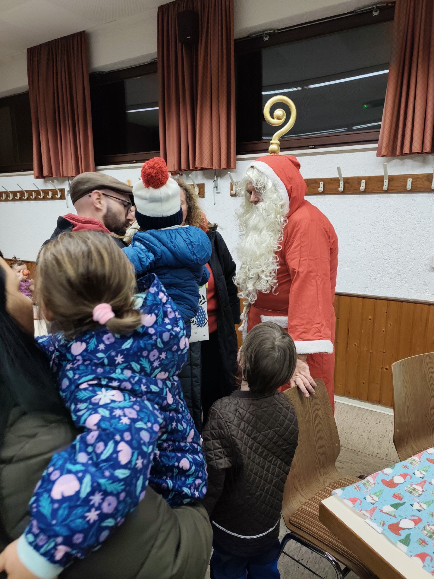 Groß bestaunt wurde auch der Nikolaus aus vielen kleinen Augen. Manchen Kindern war der dicke, rote Mann mit dem Krummstab aber auch nicht ganz geheuer. Trotzdem gab es für alle Kleinen eine prall gefüllte Weihnachtstüte. Für die etwas größeren Besucher lud die Kuchentheke mit ihren vielen, leckeren Genüssen ein, serviert durch Mitglieder des TuS-Vorstandes. Bei Kaffee und Kuchen ergaben sich nette Gespräche und wem es drinnen zu warm war, der konnte seine Mahlzeit auch im kühlen Novemberabend draussen geniessen.